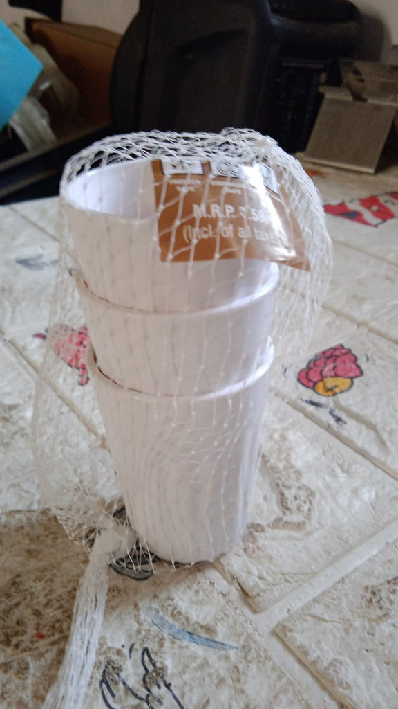 5719 Small Plastic Coffee / Tea Cups / Glass Reusable Plastic Cup Mug Lightweight Microwavable Safe Unbreakable Camping Coffee Mugs for Tea Milk Water Juice Tea (3 Pcs Set)