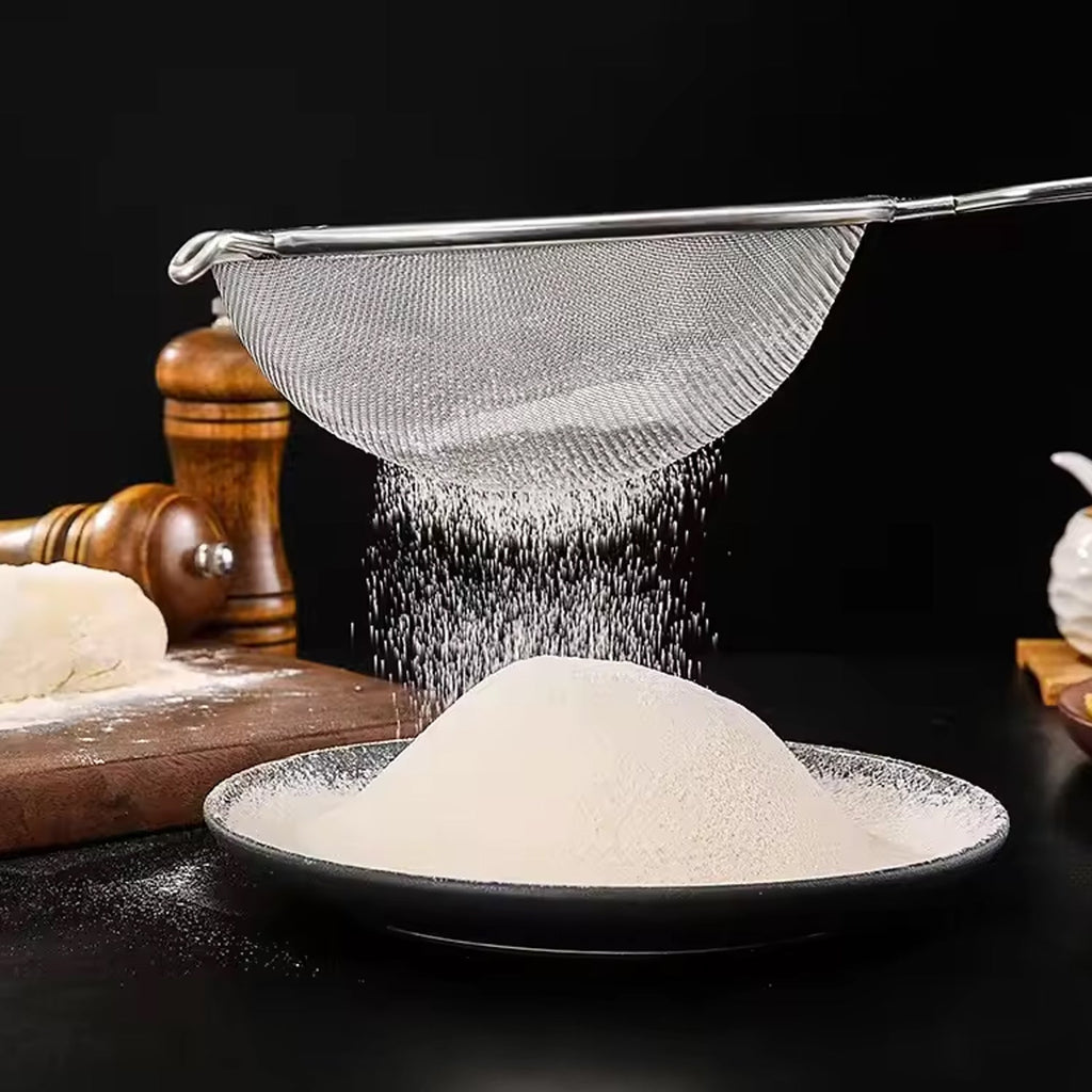 • Stainless Steel Premium Mesh Strainers Made of stainless steel, rust resistant and lightweight, but stronger than aluminum or and is long-lasting. Fine sieve strainer.