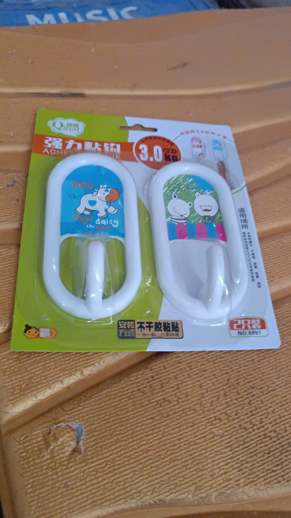 Multipurpose Strong Hook Self-Adhesive hooks for wall Heavy Plastic Hook, Sticky Hook Household For Home, Decorative Hooks, Bathroom & All Type Wall Use Hook, Suitable for Bathroom, Kitchen, Office (2 Pc Set)